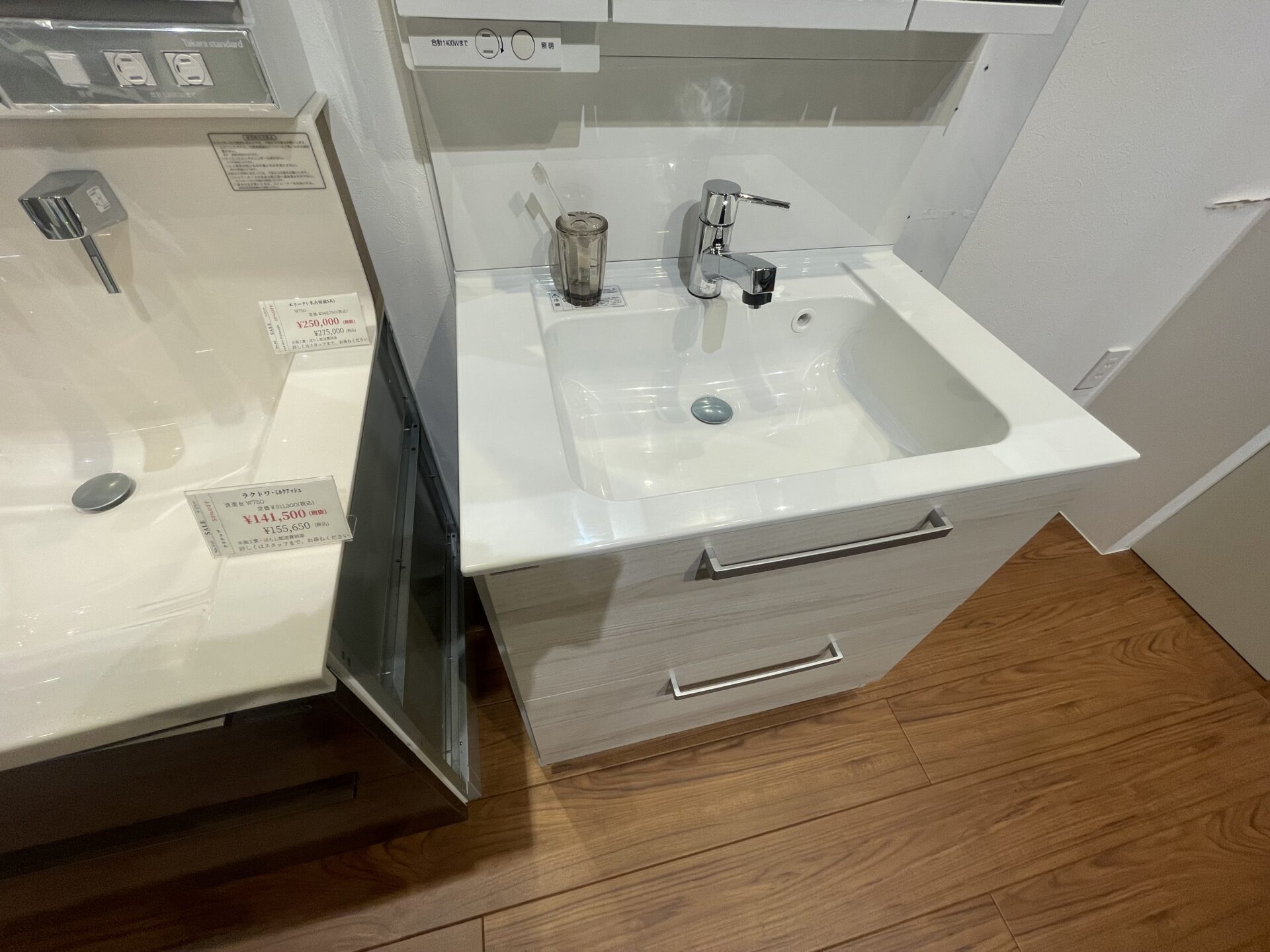 洗面本体間口 750 ボール高さ 800 奥行 530 総高さ 1900