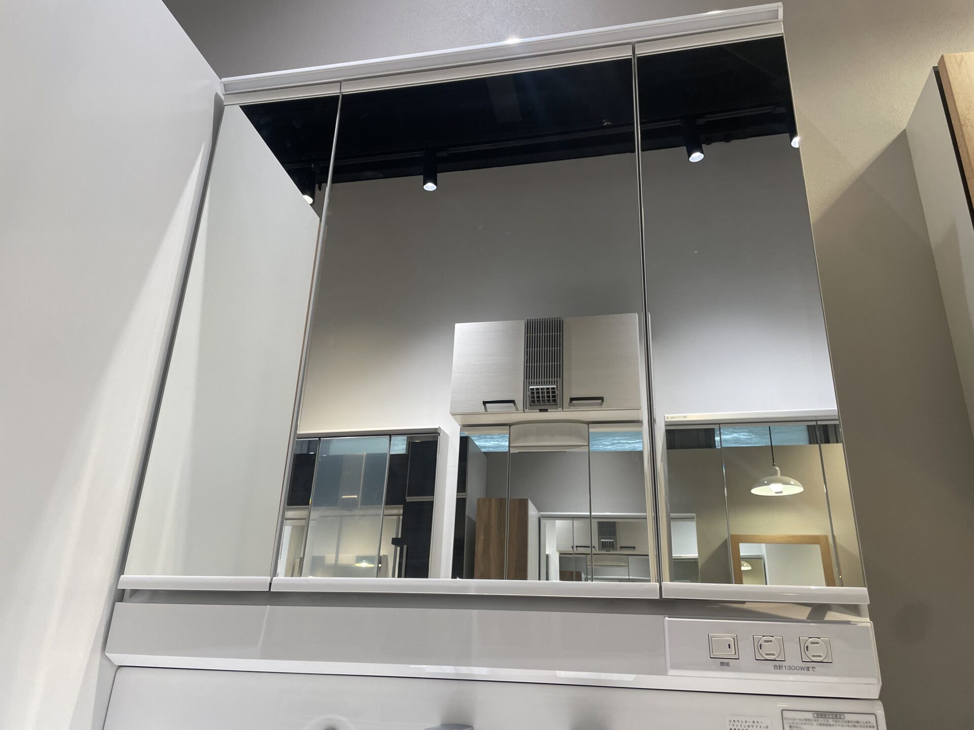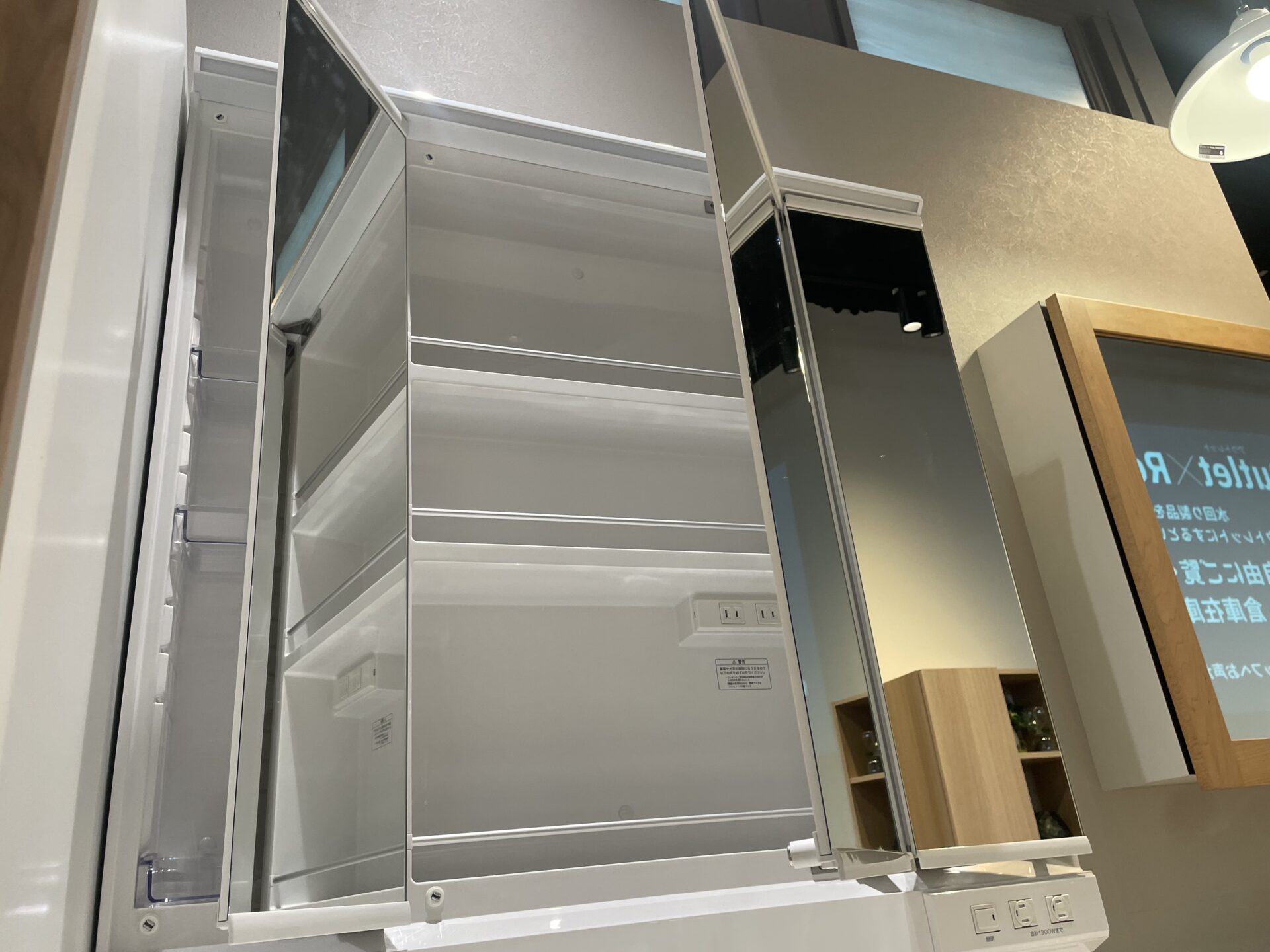 ミラー:3面鏡ワイドLED ミラー裏収納スペース有